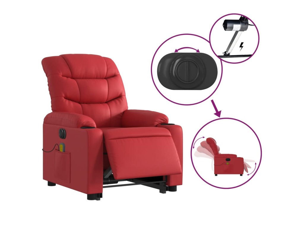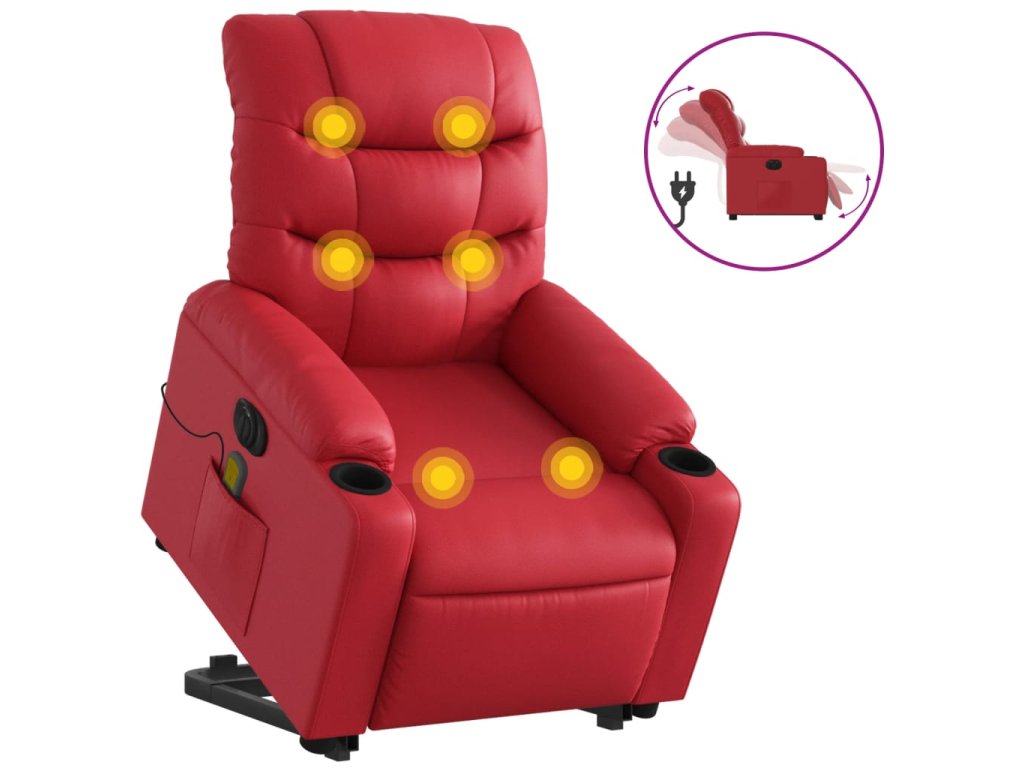 Multidom Elektrické zdvíhacie masážne sklápacie kreslo červené umel.koža