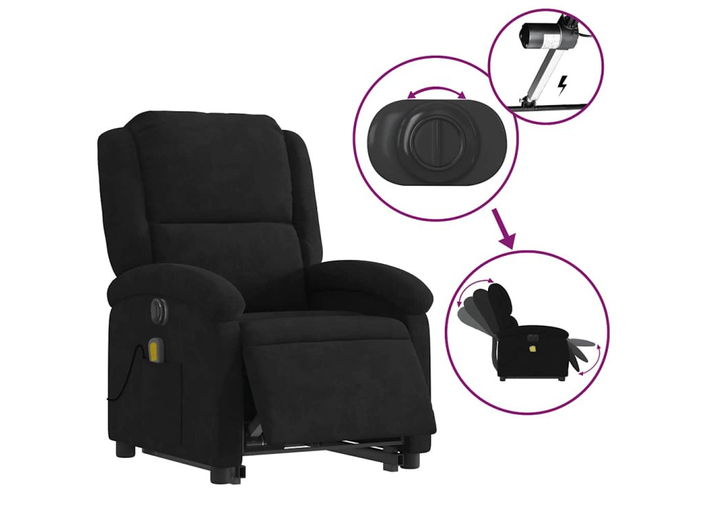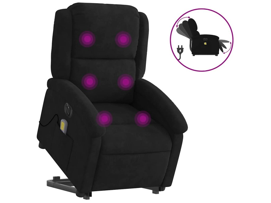 Multidom Elektrické zdvíhacie masážne sklápacie kreslo čierne zamat