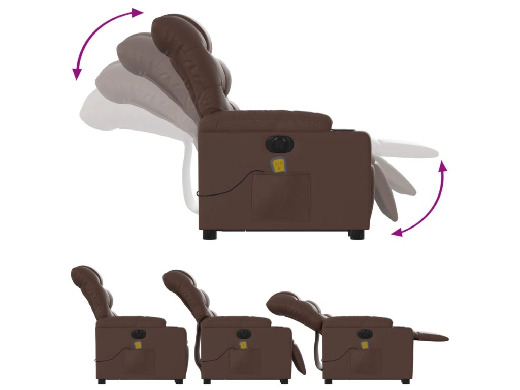 Multidom Elektrické zdvíhacie masážne sklápacie kreslo hnedé umelá koža