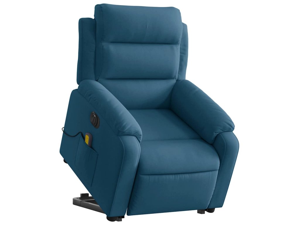 Multidom Elektrické zdvíhacie masážne sklápacie kreslo modré zamat