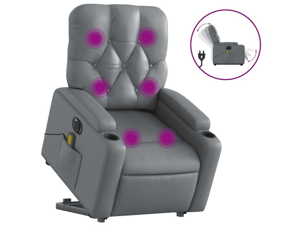 Multidom Elektrické zdvíhacie masážne sklápacie kreslo sivé umelá koža