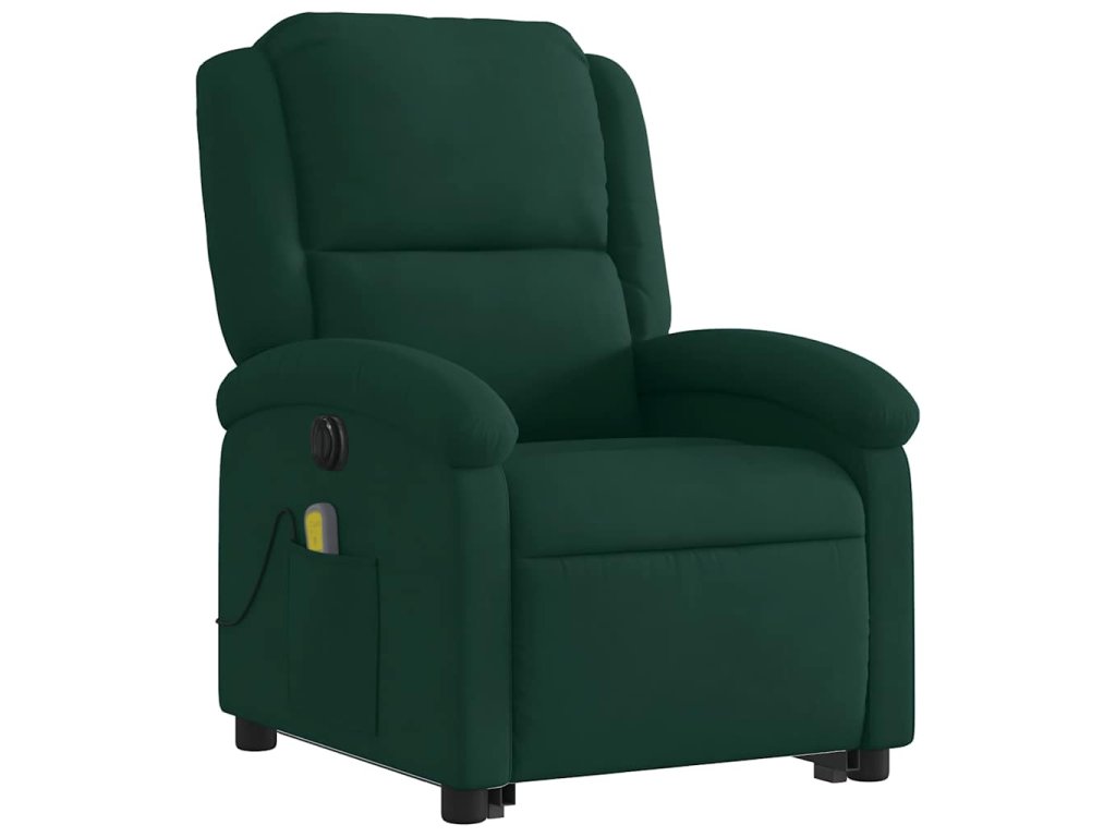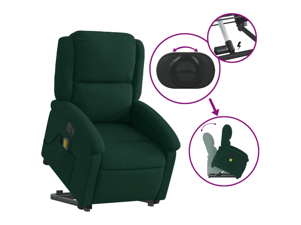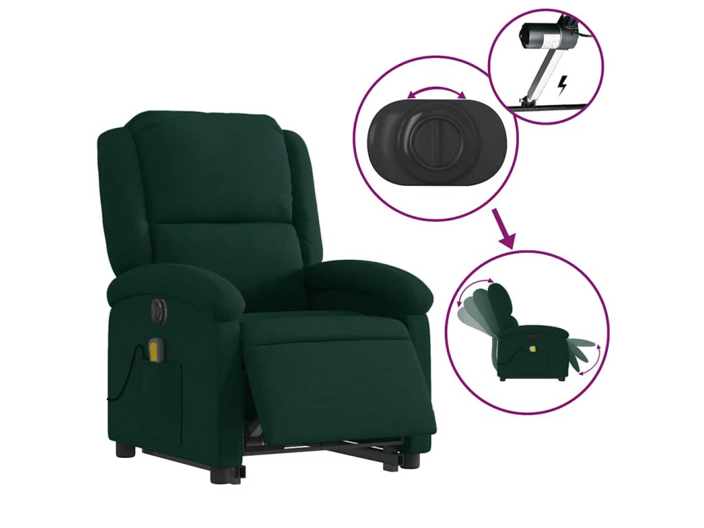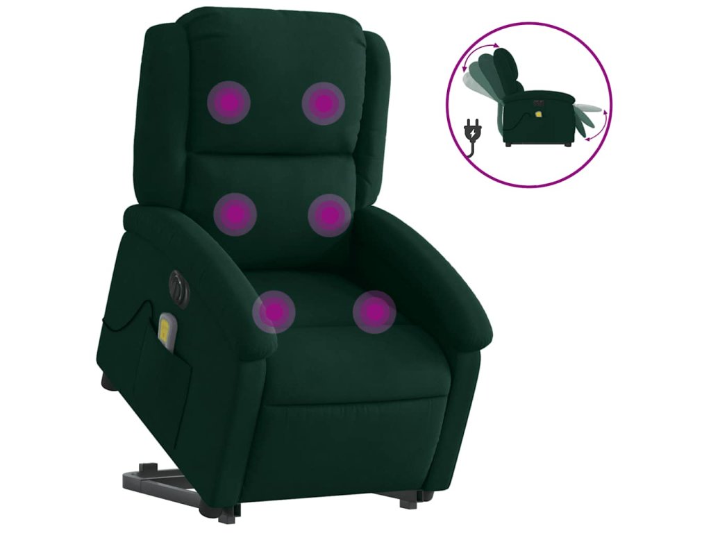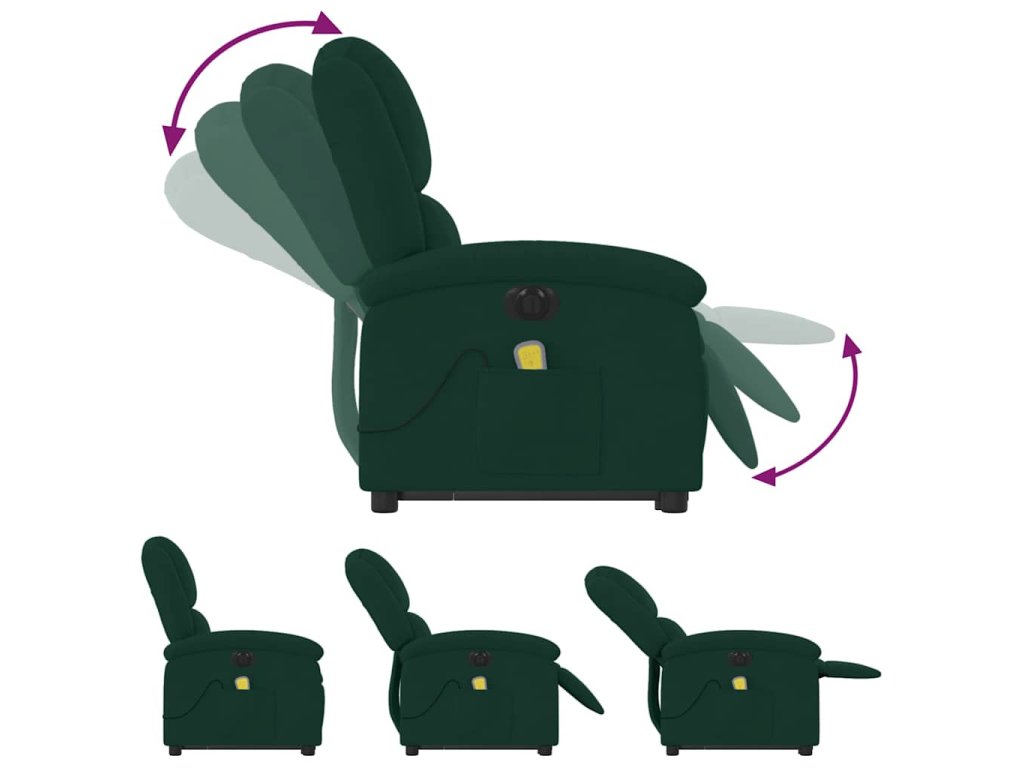 Multidom Elektrické zdvíhacie masážne sklápacie kreslo tmavozelené zamat