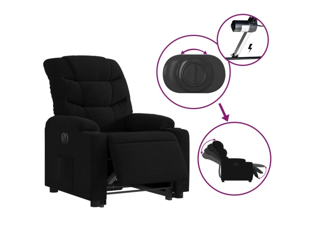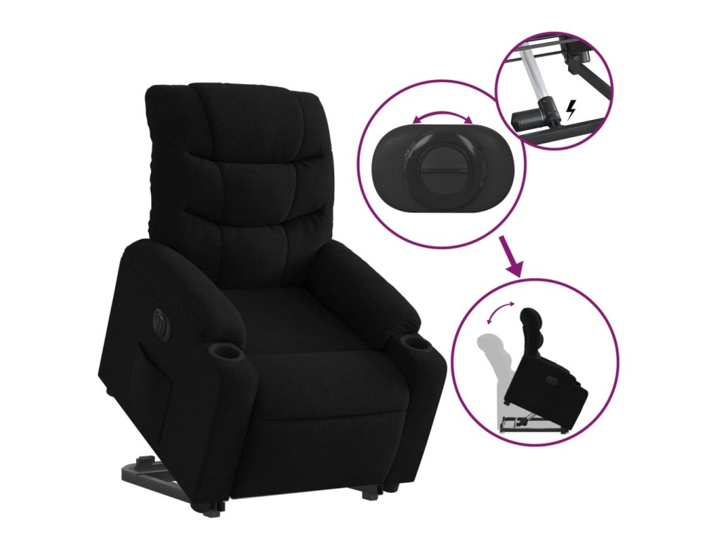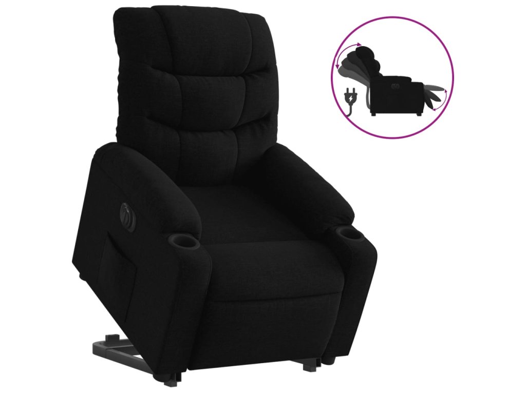 Multidom Elektrické zdvíhacie sklápacie kreslo čierne látka