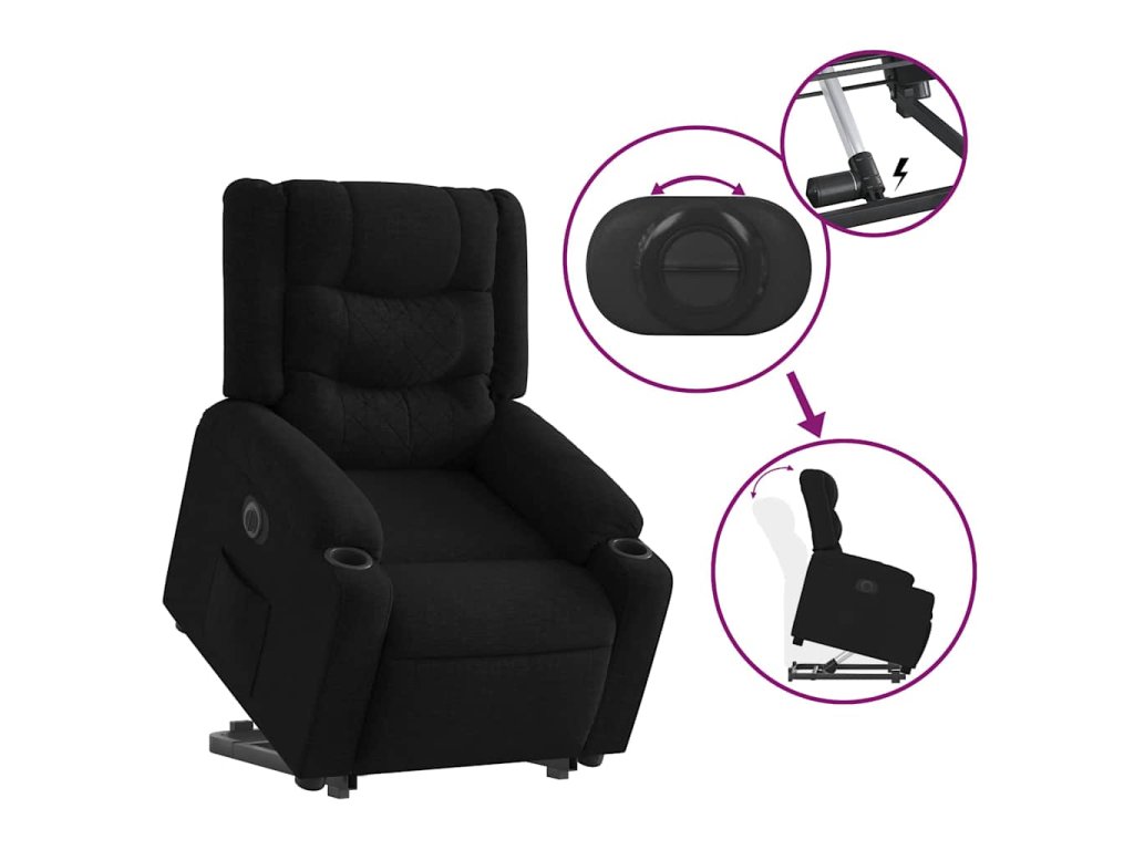 Multidom Elektrické zdvíhacie sklápacie kreslo čierne látka