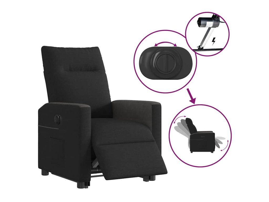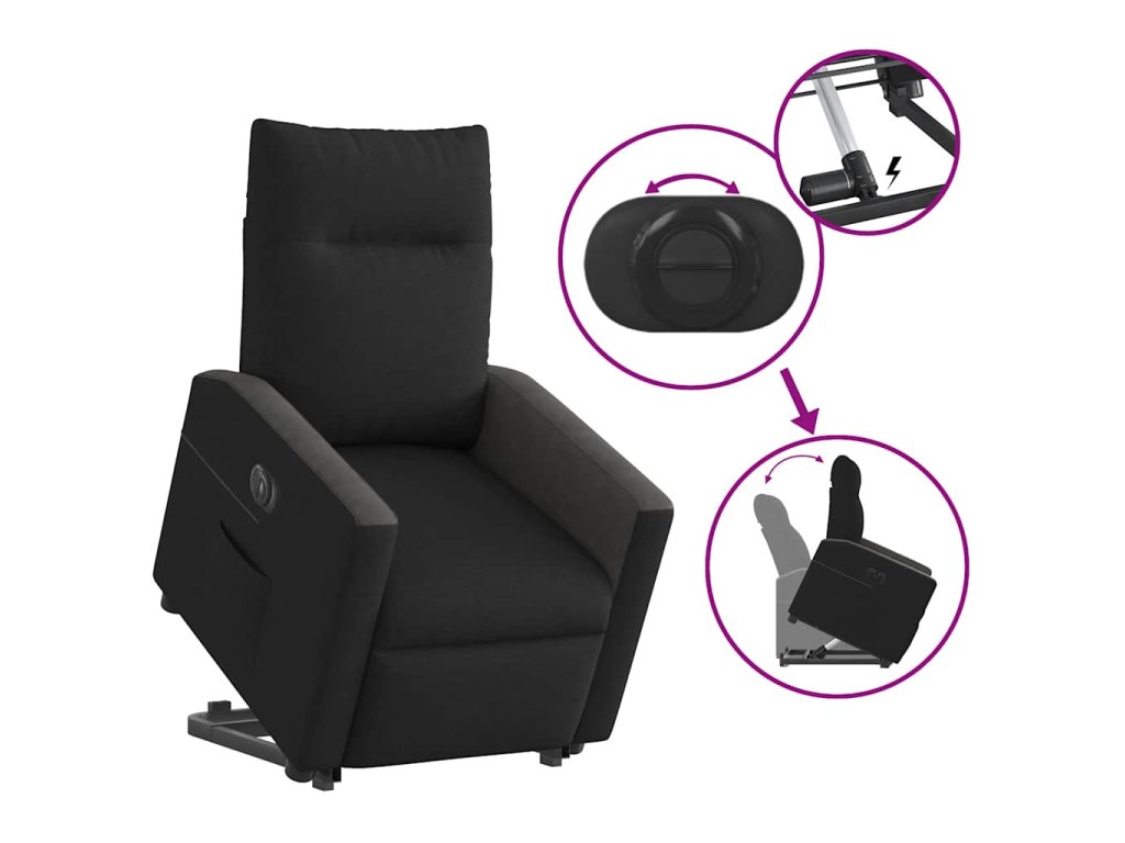 Multidom Elektrické zdvíhacie sklápacie kreslo čierne látka