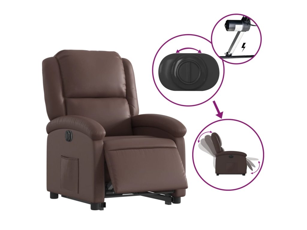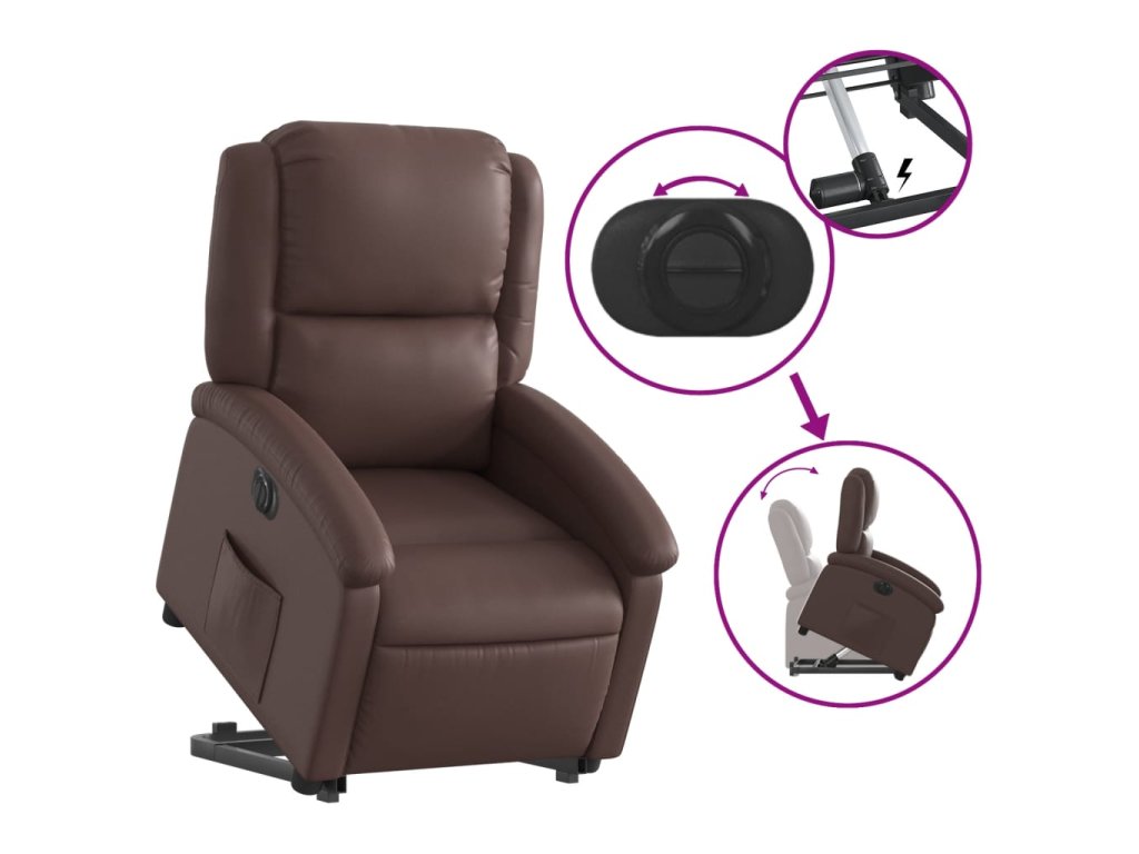 Multidom Elektrické zdvíhacie sklápacie kreslo hnedé umelá koža
