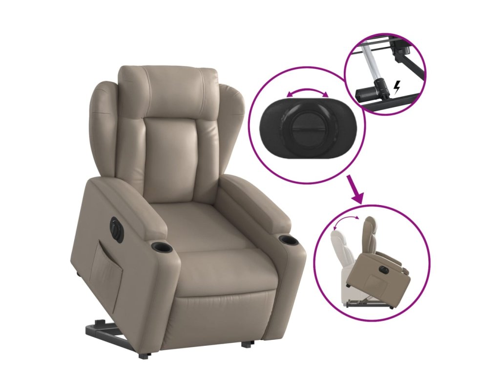 Multidom Elektrické zdvíhacie sklápacie kreslo kapučínové umelá koža