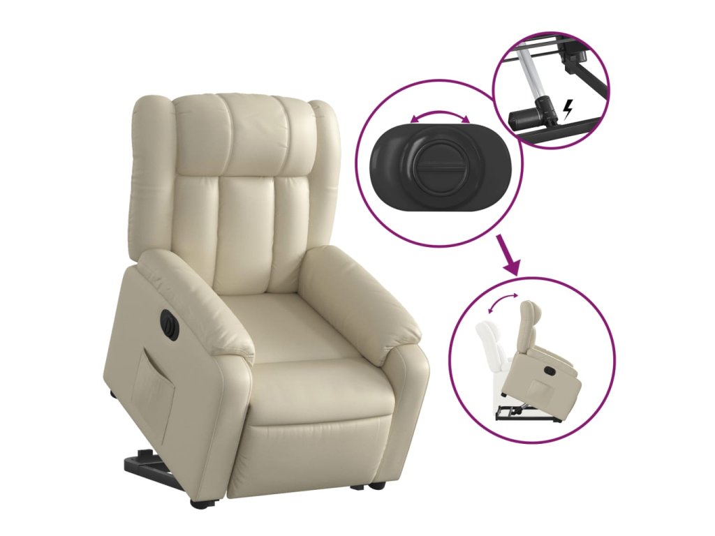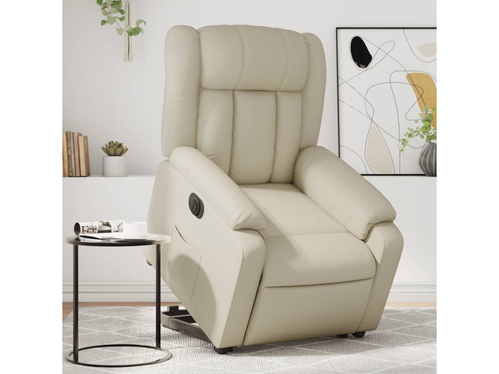 Multidom Elektrické zdvíhacie sklápacie kreslo krémové umelá koža