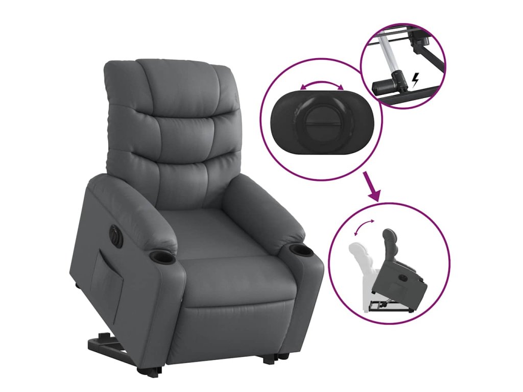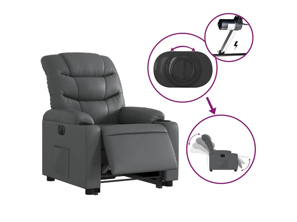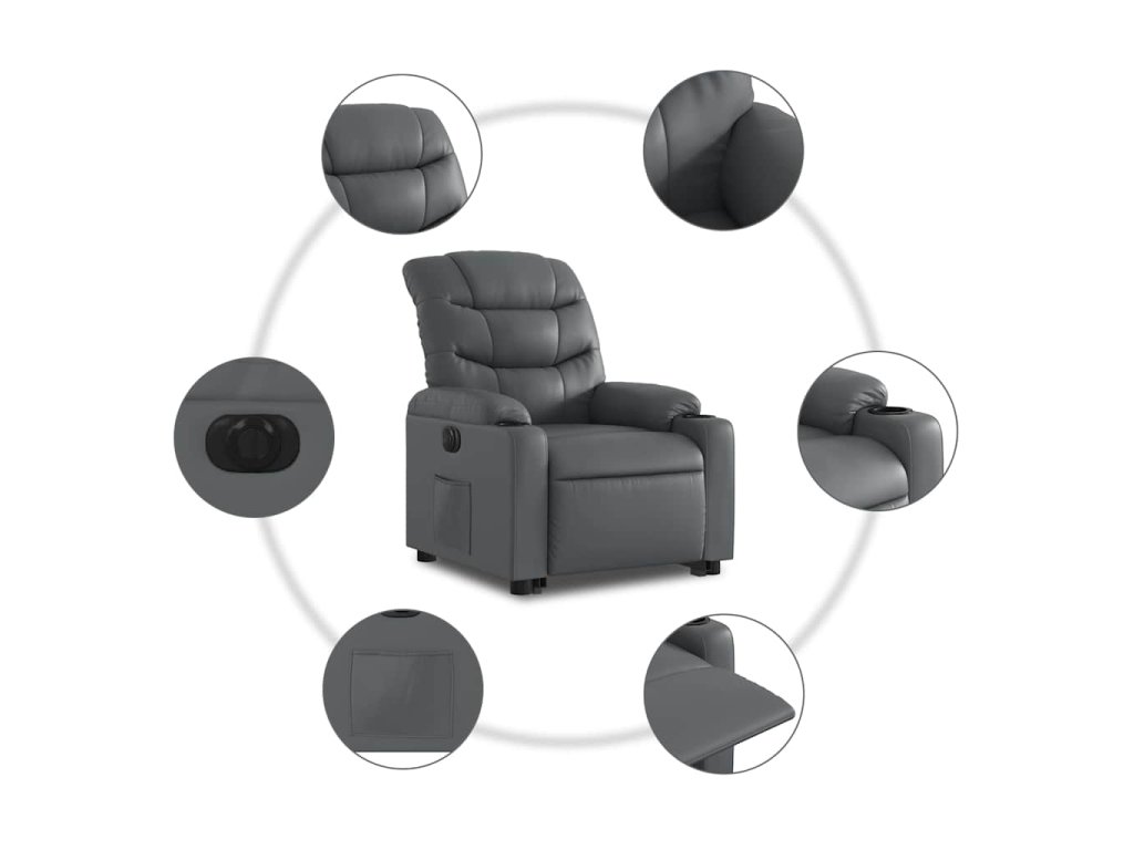 Multidom Elektrické zdvíhacie sklápacie kreslo sivé umelá koža