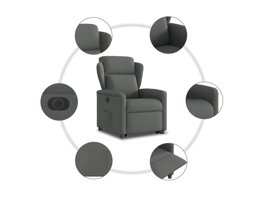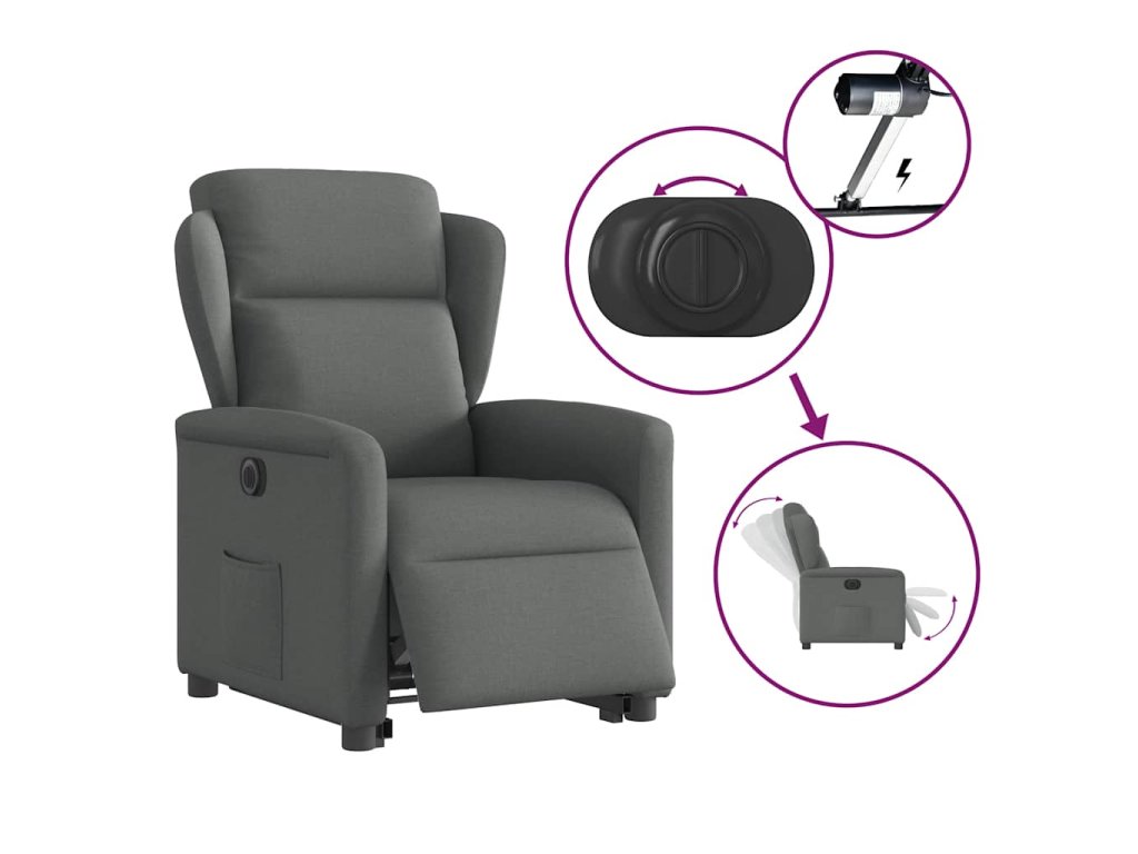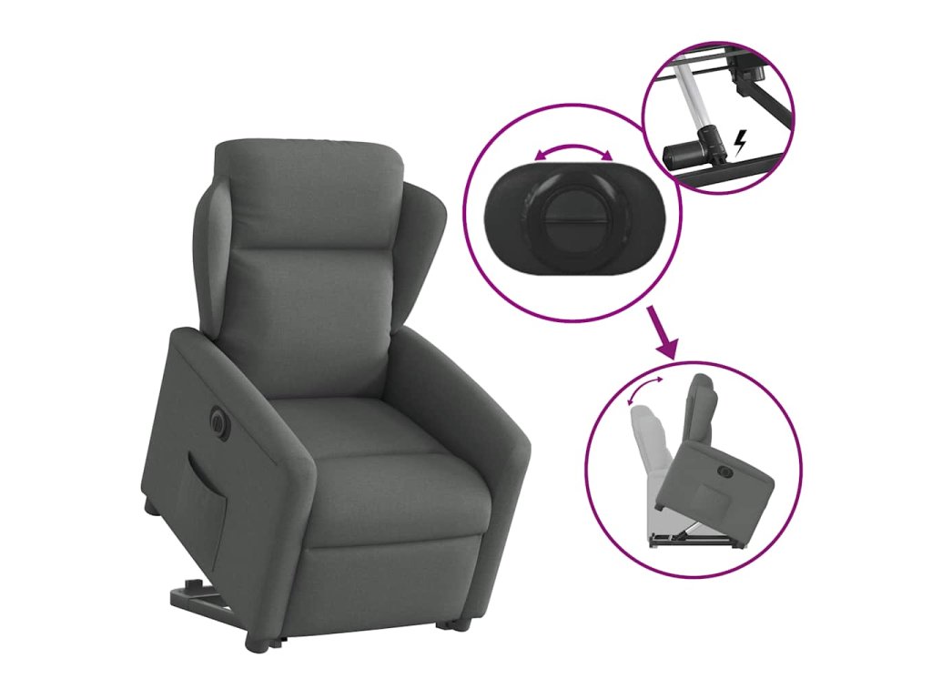 Multidom Elektrické zdvíhacie sklápacie kreslo tmavosivé látka