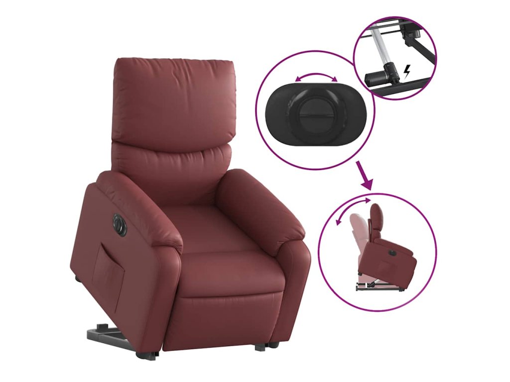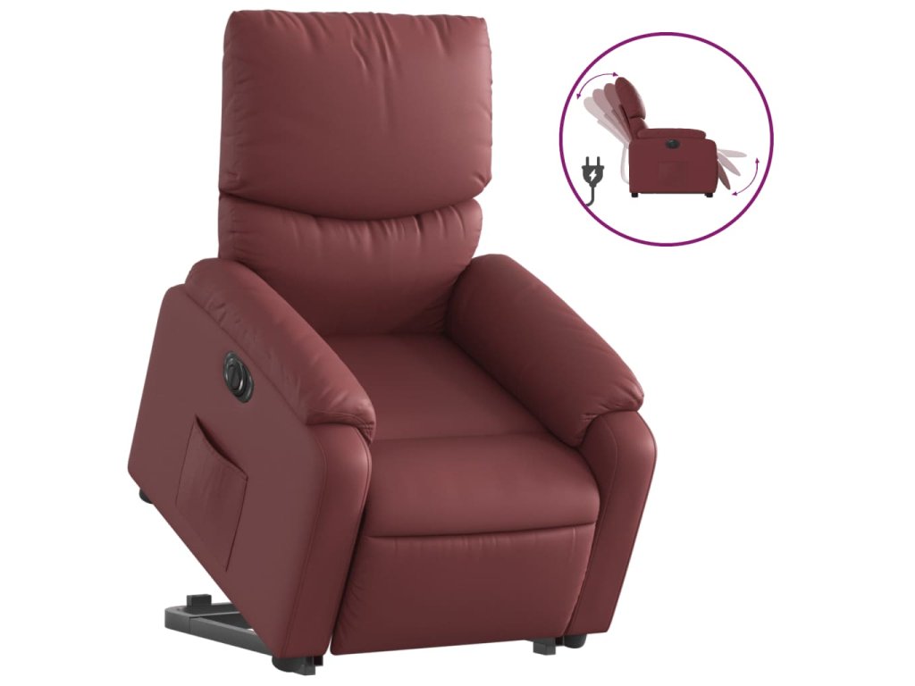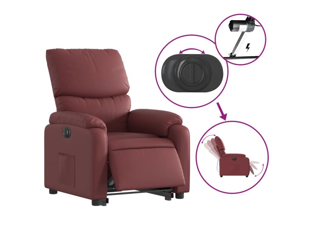 Multidom Elektrické zdvíhacie sklápacie kreslo vínovo červené umelá koža