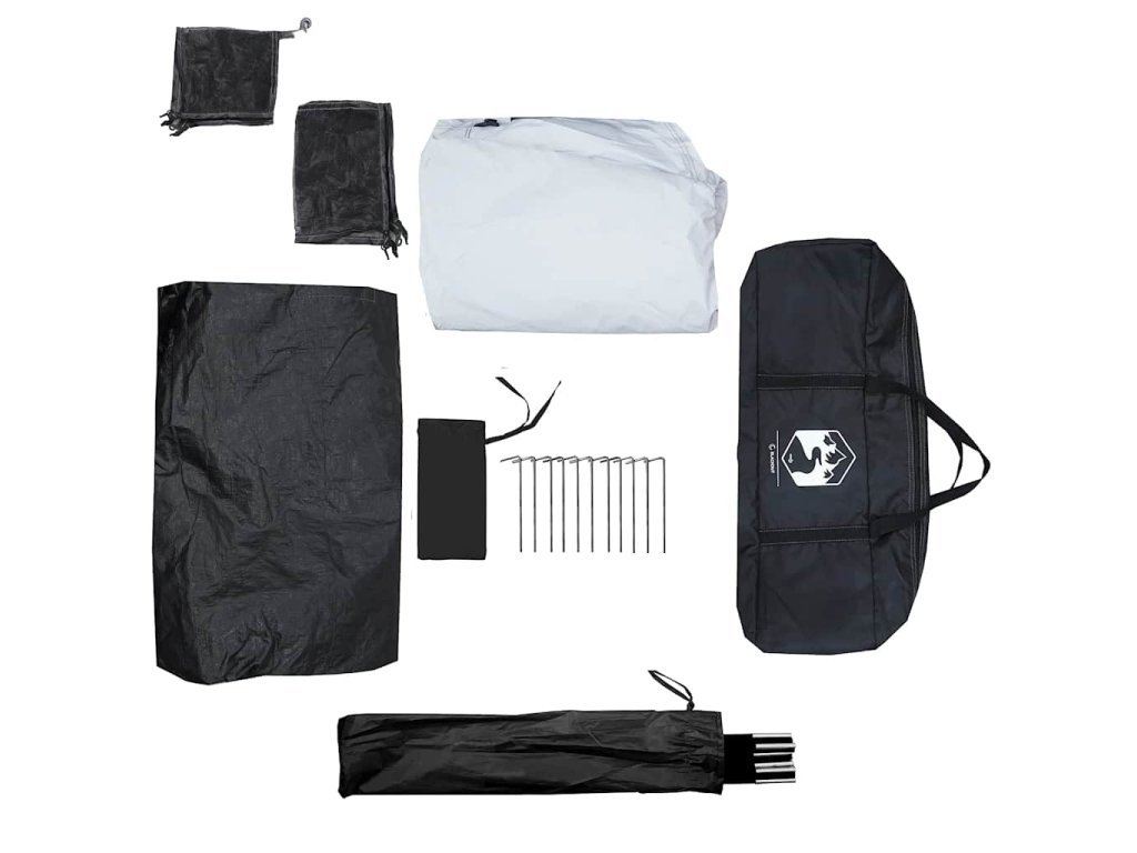 - Vodotesný dizajn: Tento kempingový stan je vyrobený z polyesteru s PU vrstvou, takže je vodeodolný a odolný voči vetru. Podlepené švy účinne zabraňujú prenikaniu dažďovej vody, zatiaľ čo odolná podlážka pomáha udržiavať interiér suchý a pohodlný.