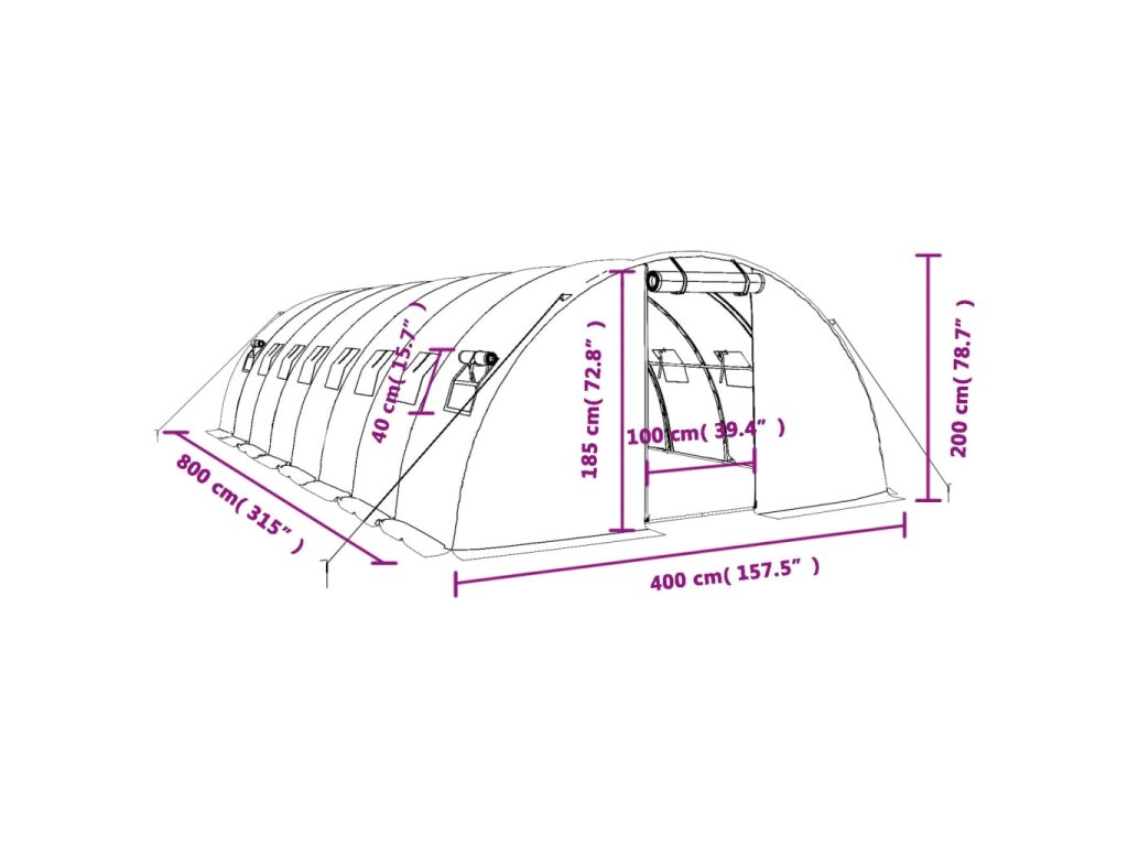 Multidom Fóliovník s oceľovým rámom biely 32 m² 8x4x2 m