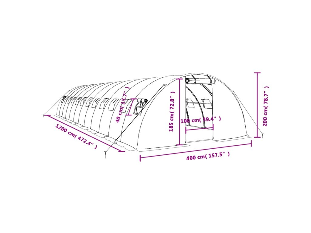 Multidom Fóliovník s oceľovým rámom zelený 48 m² 12x4x2 m