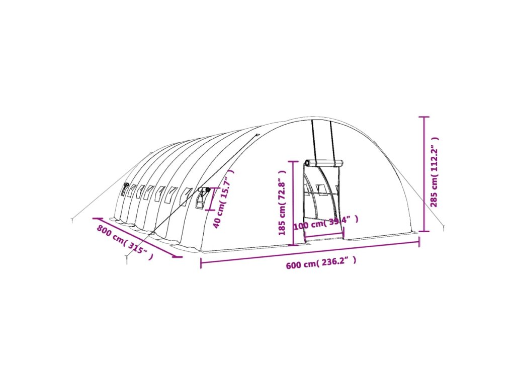 Multidom Fóliovník s oceľovým rámom zelený 48 m² 8x6x2,85 m