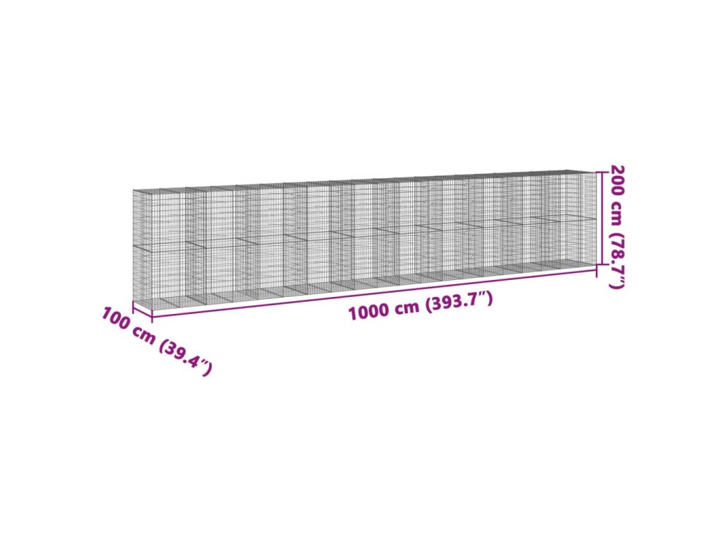 Multidom Gabiónový kôš s krytom 1000x100x200 cm pozinkované železo