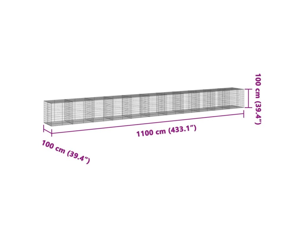 Multidom Gabiónový kôš s krytom 1100x100x100 cm pozinkované železo