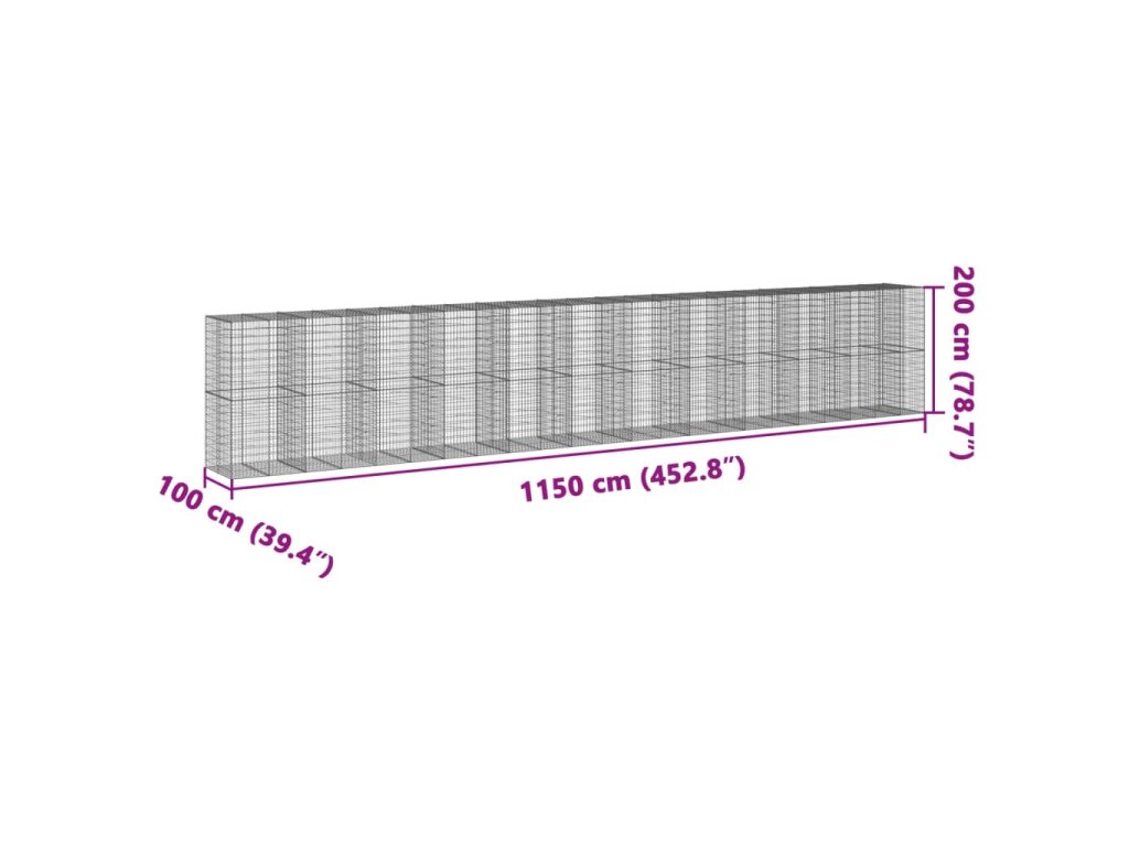 Multidom Gabiónový kôš s krytom 1150x100x200 cm pozinkované železo