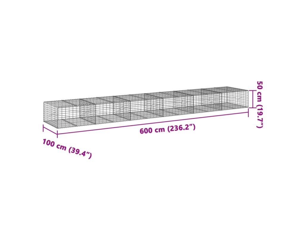 Multidom Gabiónový kôš s krytom 600x100x50 cm pozinkované železo