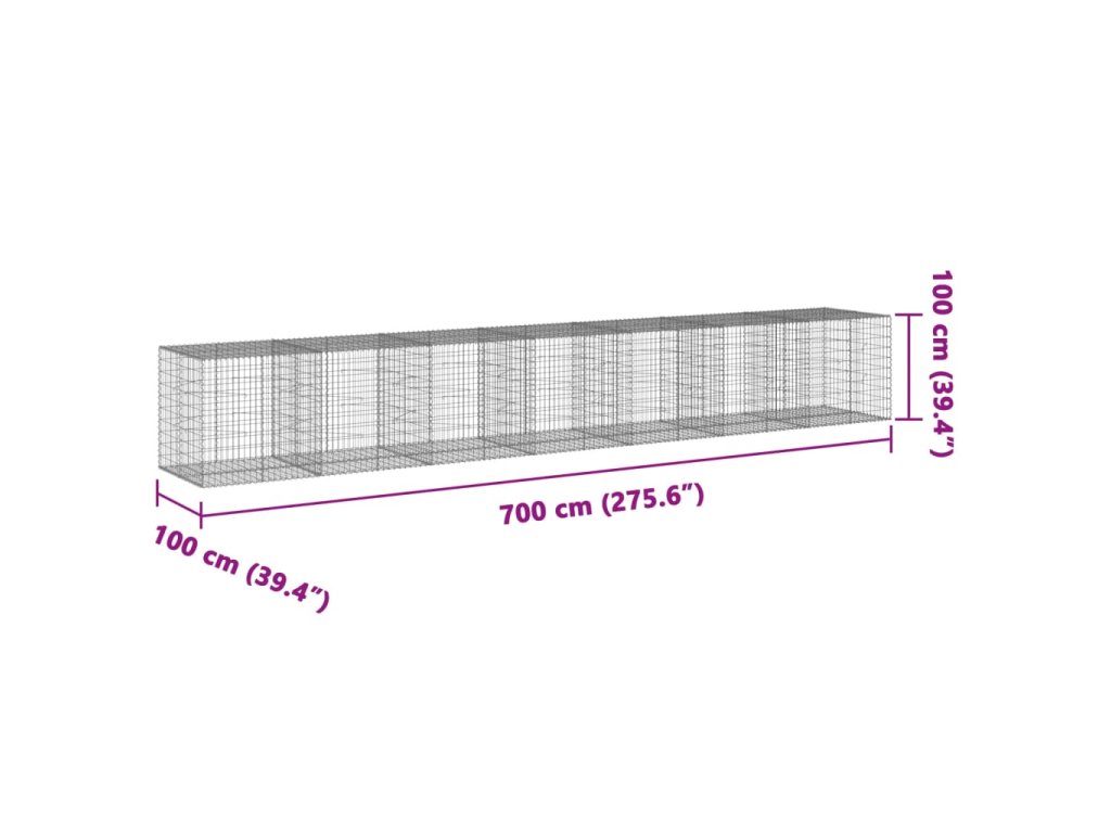 Multidom Gabiónový kôš s krytom 700x100x100 cm pozinkované železo