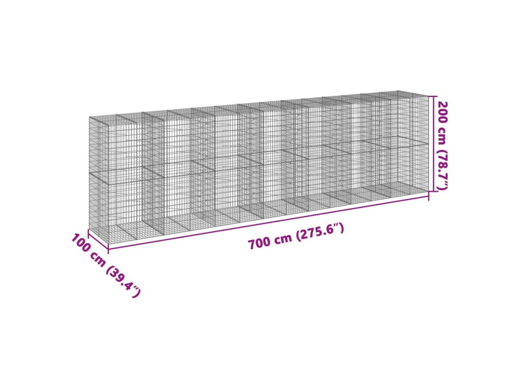 Multidom Gabiónový kôš s krytom 700x100x200 cm pozinkované železo
