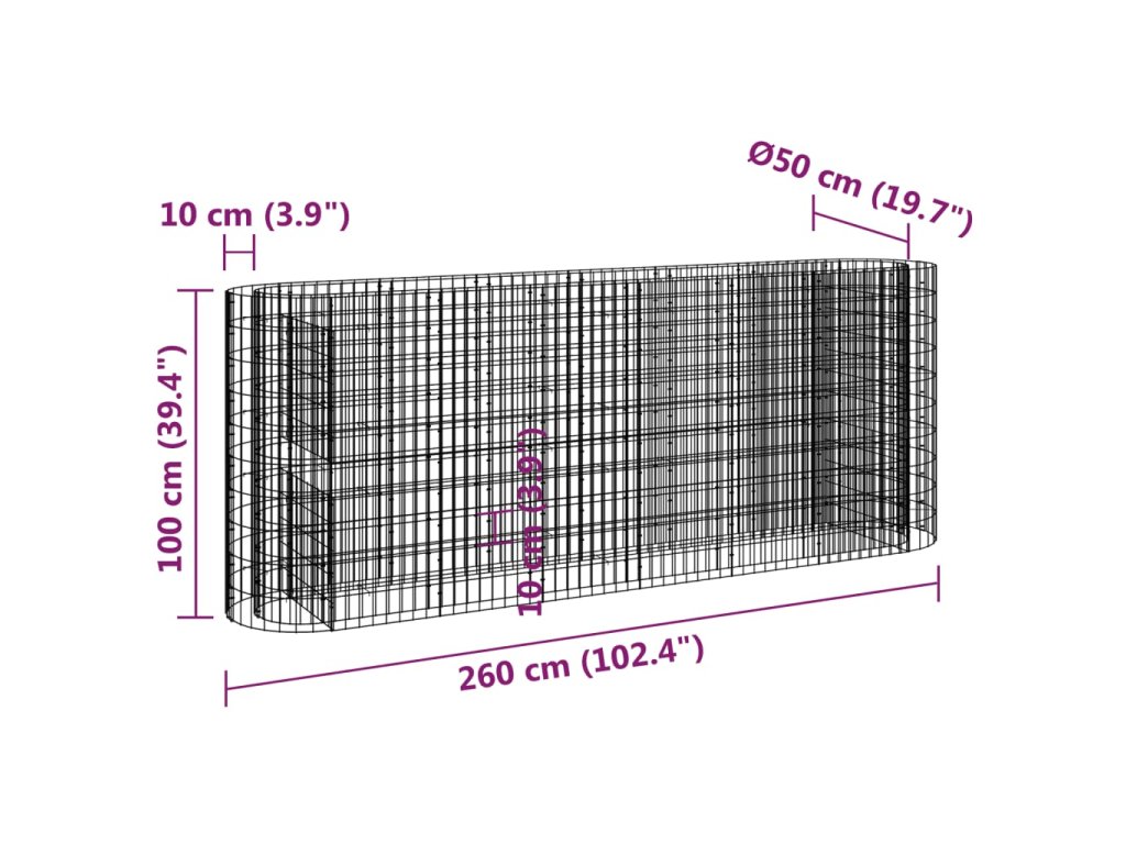 Multidom Gabiónový vyvýšený záhon pozinkované železo 260x50x100 cm