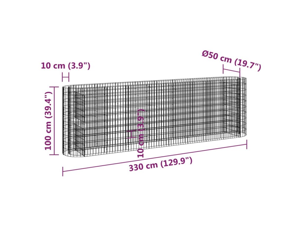 Multidom Gabiónový vyvýšený záhon pozinkované železo 330x50x100 cm