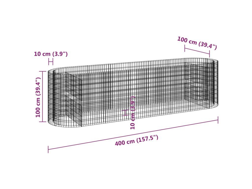 Multidom Gabiónový vyvýšený záhon pozinkované železo 400x100x100 cm