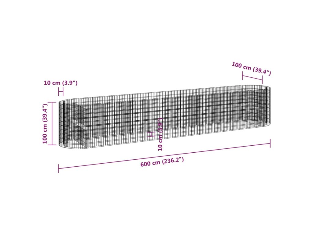 Multidom Gabiónový vyvýšený záhon pozinkované železo 600x100x100 cm