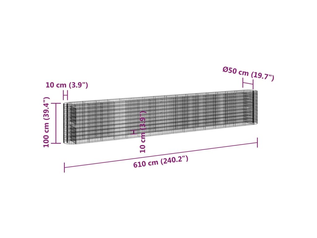 Multidom Gabiónový vyvýšený záhon pozinkované železo 610x50x100 cm