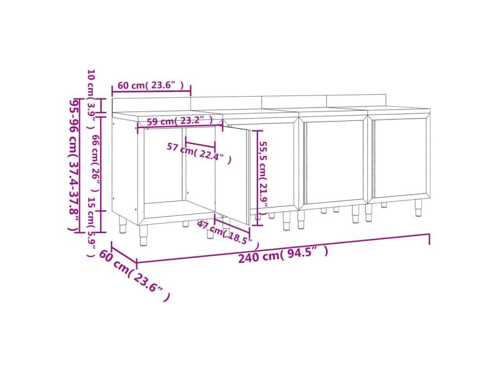 - Celkové rozmery: 240 x 60 x (95-96) cm (D x Š x V)