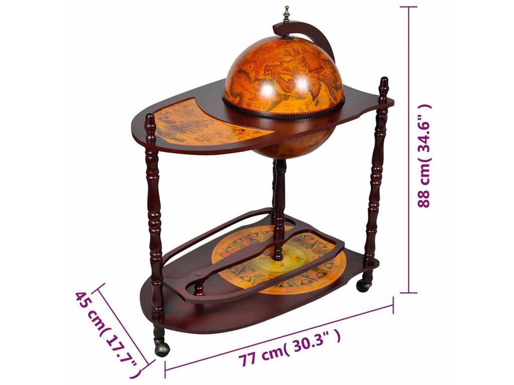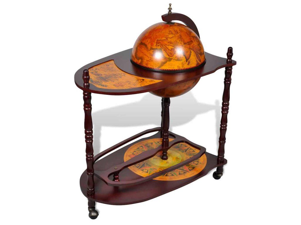 Drevený glóbus sa dá otvoriť a v jeho vnútri sa nachádza veľký bar s množstvom priestoru na víno, likéry, nápoje a poháre, takže si budete môcť svoje fľaše a poháre úhľadne uložiť a zároveň k nim budete mať jednoduchý prístup. Glóbus je navyše vybavený predĺženým stolíkom a policou v spodnej časti, ktoré taktiež poslúžia ako skvelé miesto na odkladanie pohárov a fliaš.