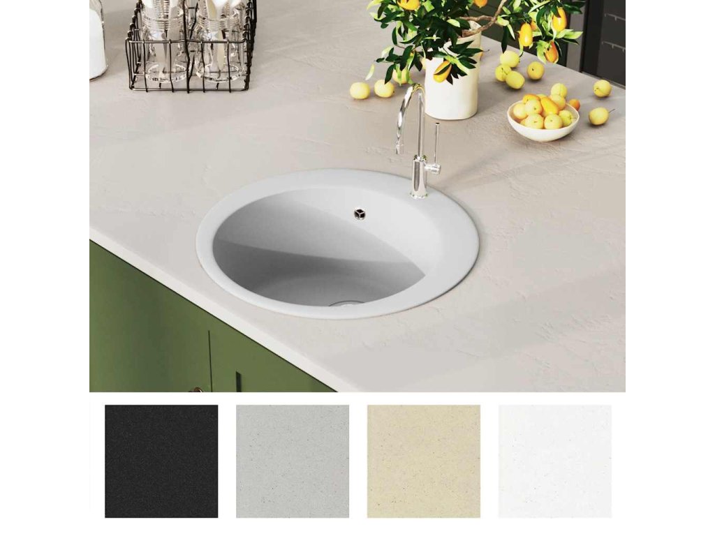 Multidom Granitový kuchynský drez s jednou vaničkou okrúhly biely