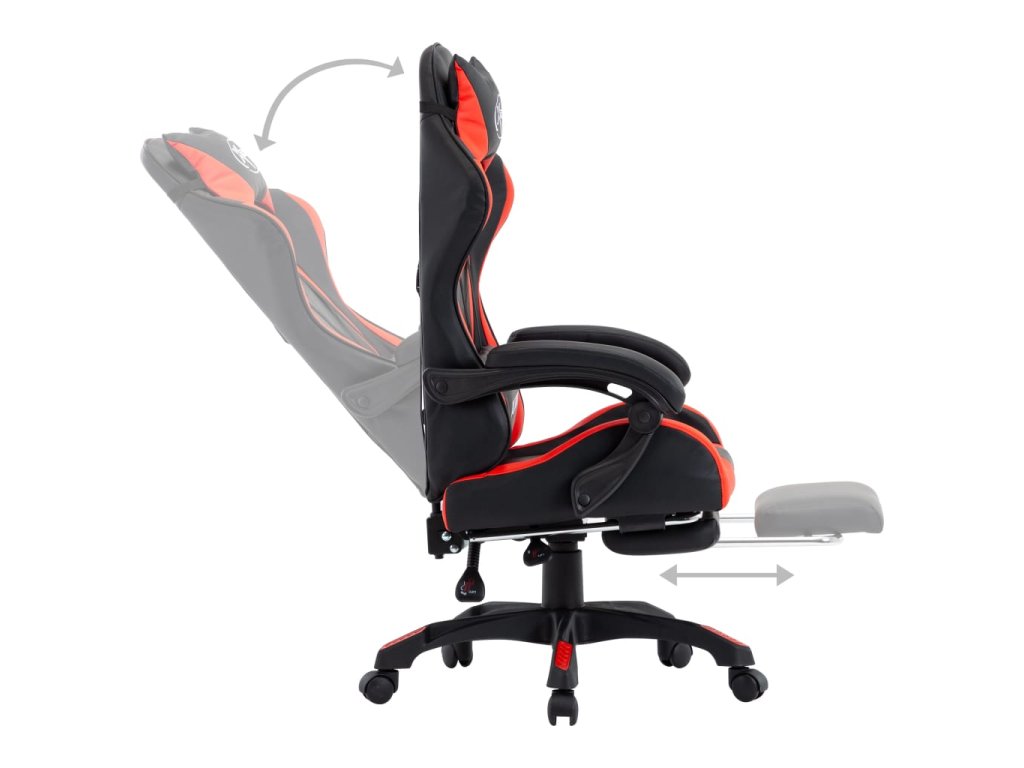 Multidom Herná stolička s opierkou na nohy, červeno čierna, umelá koža