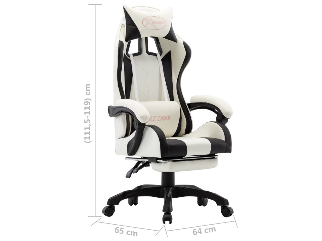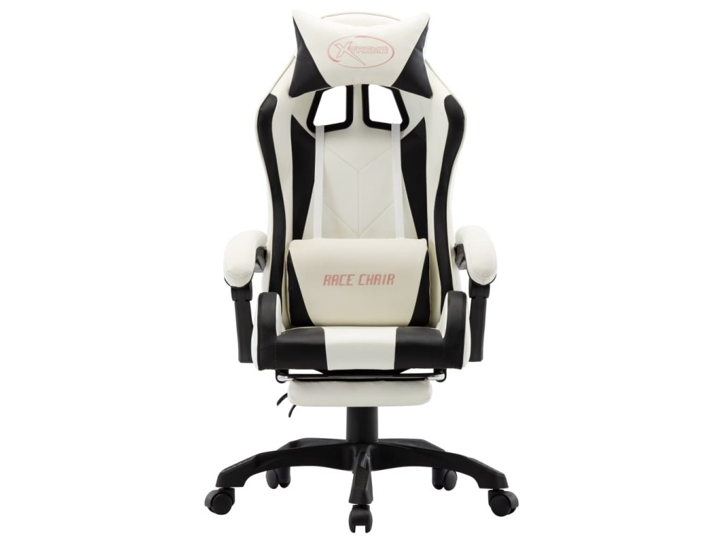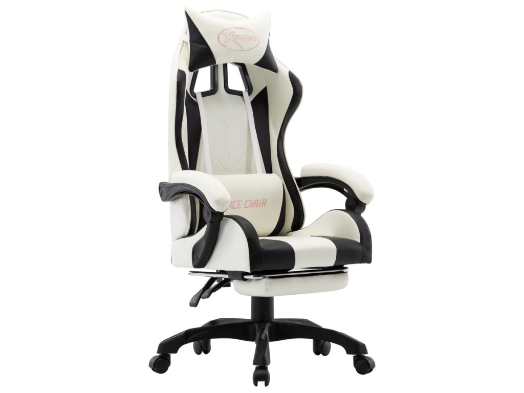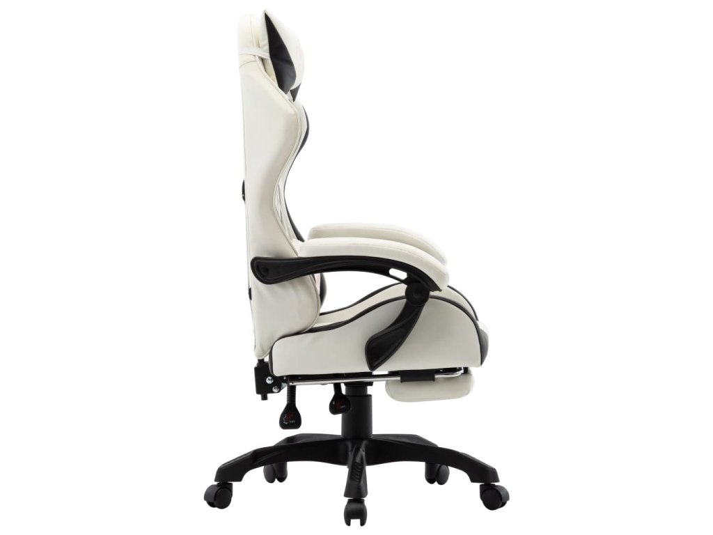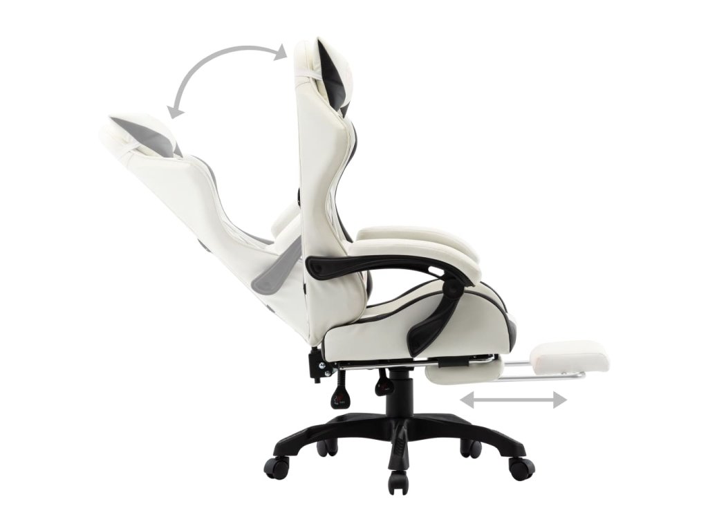 Multidom Herná stolička s opierkou na nohy, čierno biela, umelá koža