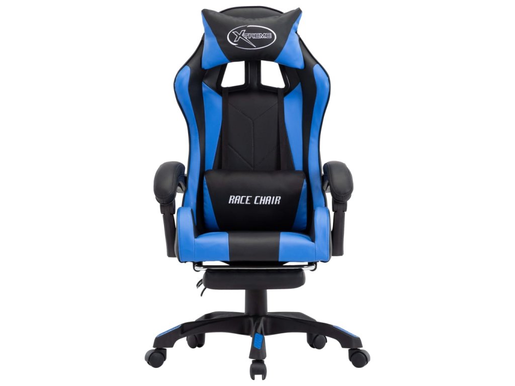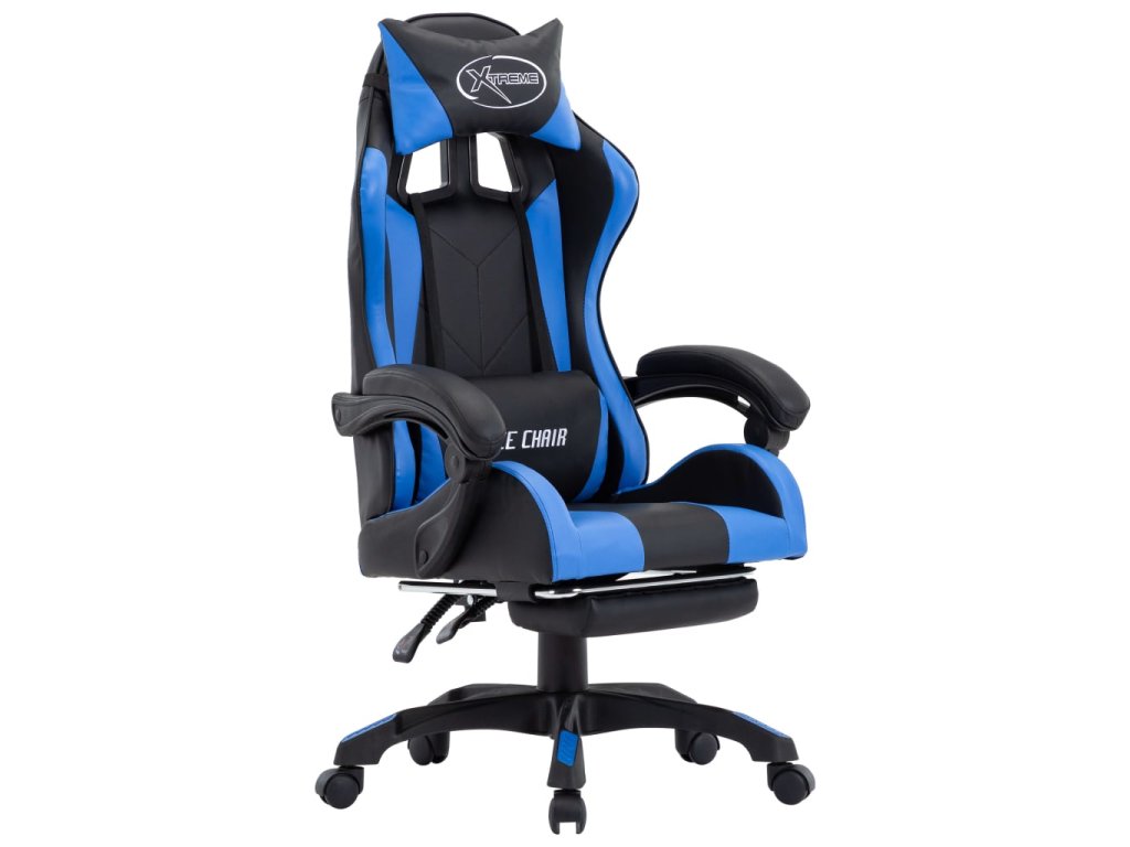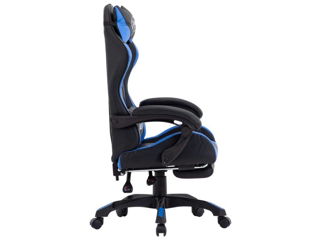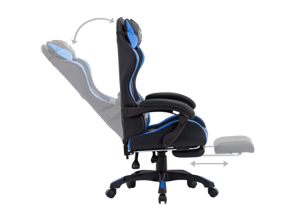 Multidom Herná stolička s opierkou na nohy, modro čierna, umelá koža