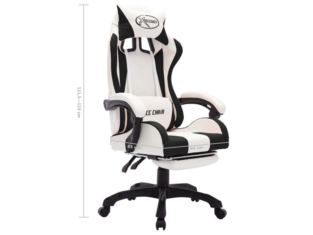 Táto herná stolička je čalúnená umelou kožou, takže sa ľahko čistí. Sklápacia stolička má vysúvaciu opierku na nohy, ktorá sa dá zasunúť pod sedadlo, keď ju nepoužívate. Vankúš na hlavu s hustou výplňou a podložka v oblasti pásu poskytujú dodatočné pohodlie počas náročného pracovného dňa. Výška kancelárskej stoličky sa dá nastaviť pomocou plynového piestu. Stolička sa navyše dá aj sklápať - ak si chcete zdriemnuť, stačí operadlo sklopiť do plne vodorovnej polohy. Stolička je otočná v rozsahu 360 stupňov a je vybavená 5 otočnými kolieskami, vďaka čomu sa dá jednoducho premiestniť. Táto herná stolička je čalúnená umelou kožou, takže sa ľahko čistí.