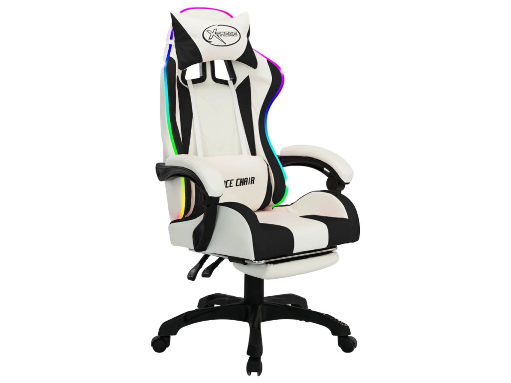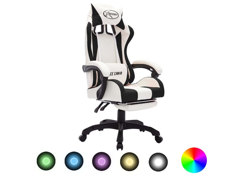 Multidom Herná stolička s RGB LED svetlami čierno-biela umelá koža