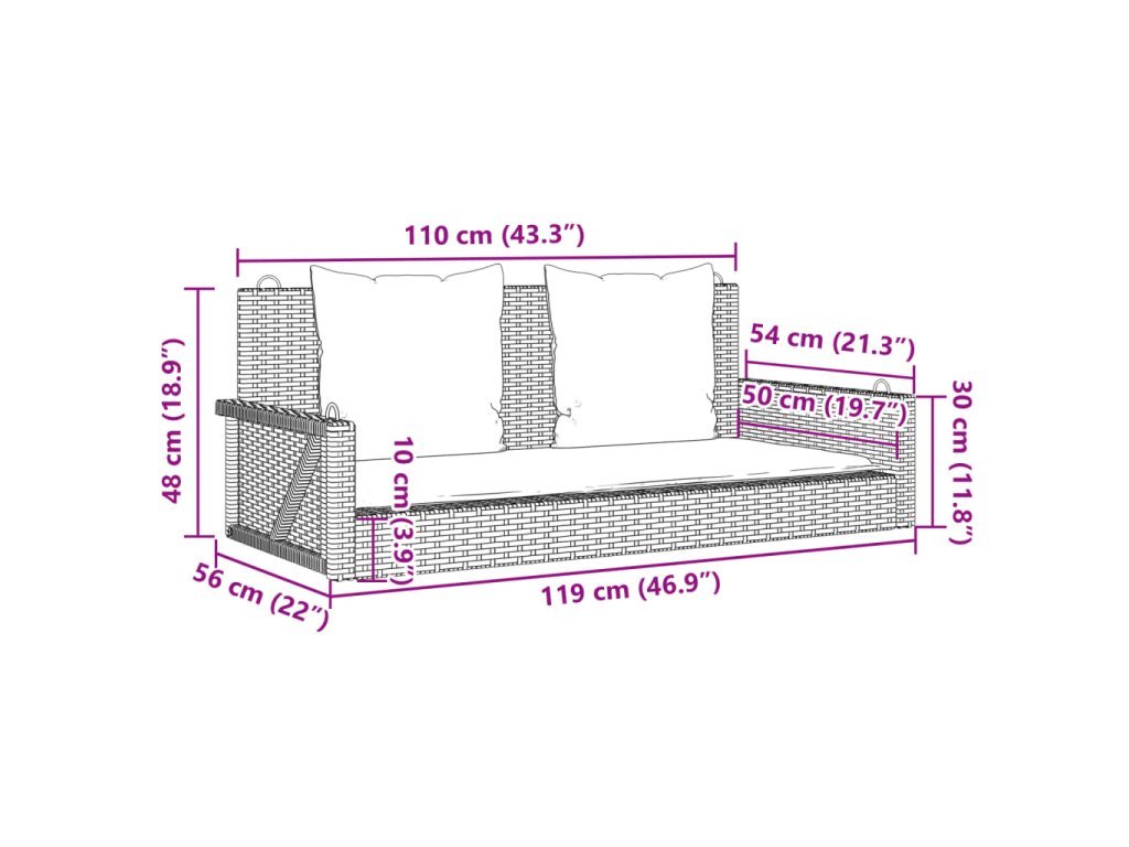 Komentár k produktu Multidom Hojdacia lavica s vankúšmi sivá 119x56x48 cm polyratan