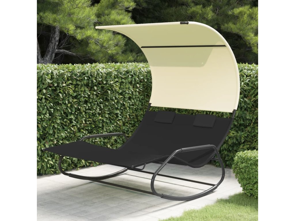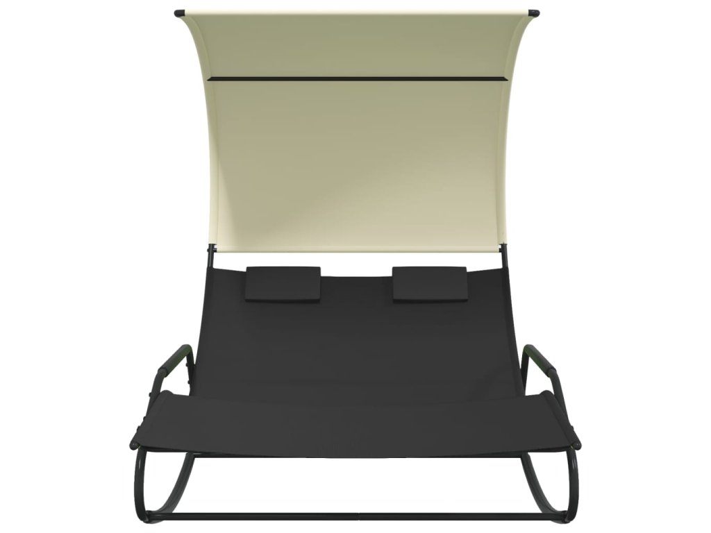 Multidom Hojdacie dvojité lehátko s baldachýnom čierna a krémová
