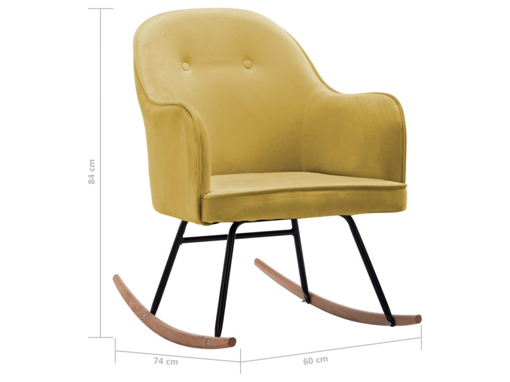 Hojdacie kreslo má zamatový poťah a železný rám s práškovou povrchovou úpravou, vďaka čomu je stabilné a mäkké, aby sa vám na ňom sedelo naozaj príjemne. Sedadlo s hustou výplňou poskytuje optimálne pohodlie pri sedení. Nohy z bukového dreva prinášajú vysokú stabilitu a vďaka dizajnu s dlhými nohami sa kreslo len tak ľahko neprevráti.