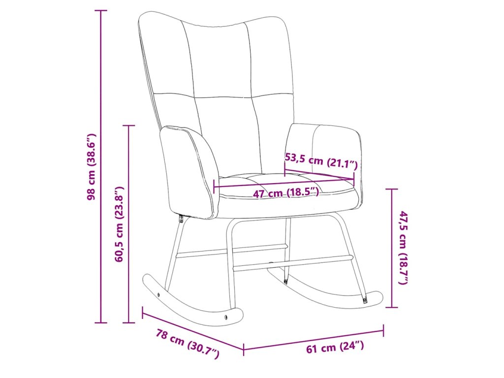 Toto relaxačné kreslo s ozdobným prešívaním so štvorcovým vzorom pôsobí veľmi elegantne. Poťah z mäkkého zamatu s molitanovým polstrovaním vám poskytne optimálne pohodlie počas sedenia. Vďaka dlhým hojdacím lyžinám sa kreslo len tak ľahko neprevrhne. Kreslo do obývačky je navyše podopreté oceľovým rámom, ktorý mu spolu s drevenými hojdacími lyžinami dodáva potrebnú stabilitu a trvácnosť.