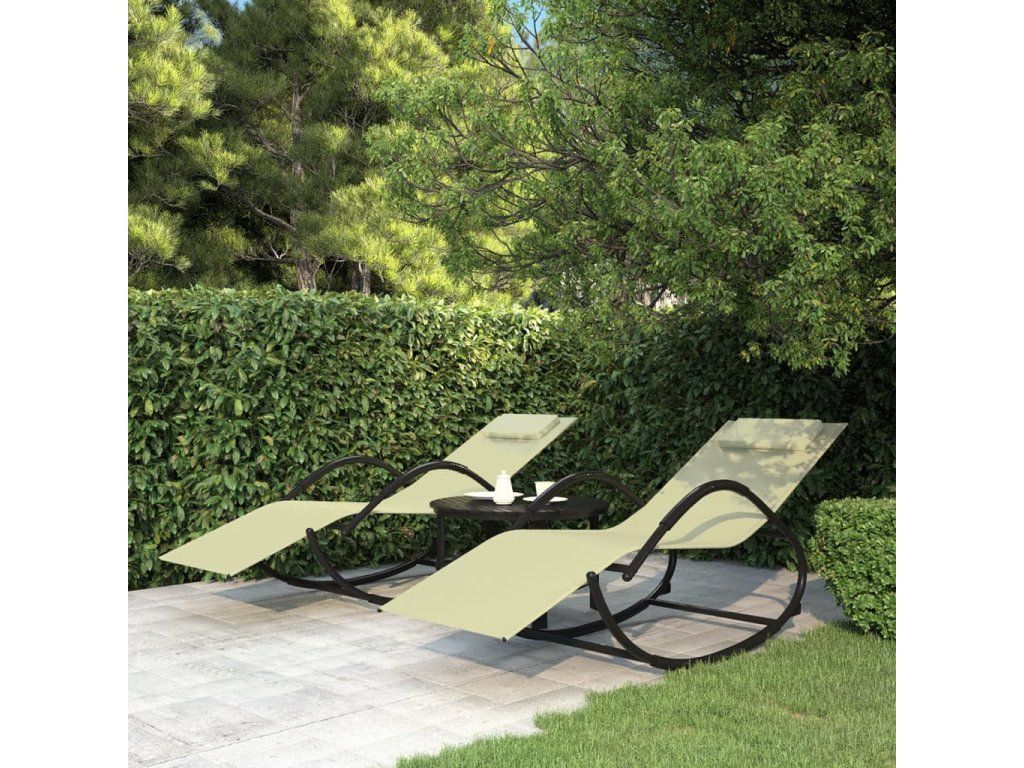 Multidom Hojdacie záhradné ležadlá 2 ks krémové oceľ a textilén