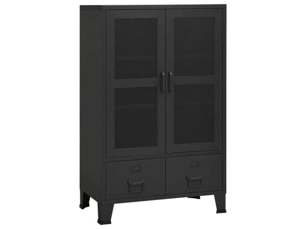 Táto komoda je vyrobená z kovu, vďaka čomu je pevná a stabilná. Má 2 police a 2 zásuvky, ktoré poskytujú dostatok úložného priestoru na uloženie vašich DVD, multimediálnych zariadení, kníh a malých predmetov zorganizovaných a na dosah ruky. Vďaka držiakom na menovky na zásuvkách vám umožňuje prehľadne triediť rôzne položky. Zásuvky s 2-dielnymi guličkovými koľajnicami zaisťujú plynulé otváranie a zatváranie aj pri zvýšenom zaťažení. Okrem toho 2 sieťované dvere dodajú vašej obývačke alebo spálni industriálnu atmosféru. Navyše sa ľahko čistí vlhkou handričkou.
