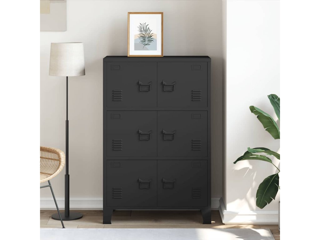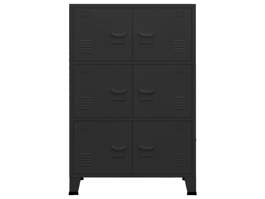 Táto skrinka je vyrobená z kovu, vďaka čomu je pevná a stabilná. Má 6 dvierok, a tak poskytuje dostatok úložného priestoru, aby ste si mohli prehľadne odložiť všetko, čo chcete mať vždy poruke. Obidve dvierka sú vybavené držiakom na menovku a vetracími otvormi, takže vám umožnia si všetko prehľadne odložiť do rôznych kategórií a zároveň zvýrazňujú industriálny vzhľad skrinky. Navyše sa ľahko čistí vlhkou handričkou.