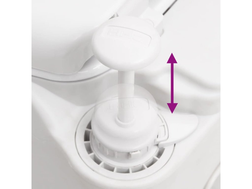 - Efektívne čistenie: Prenosné WC je vybavené piestovým čerpadlom, ktoré prepláchne misu oveľa čistejšie v porovnaní s vlnovcovým čerpadlom. Splachovanie typu T uľahčuje odstraňovanie odpadu.