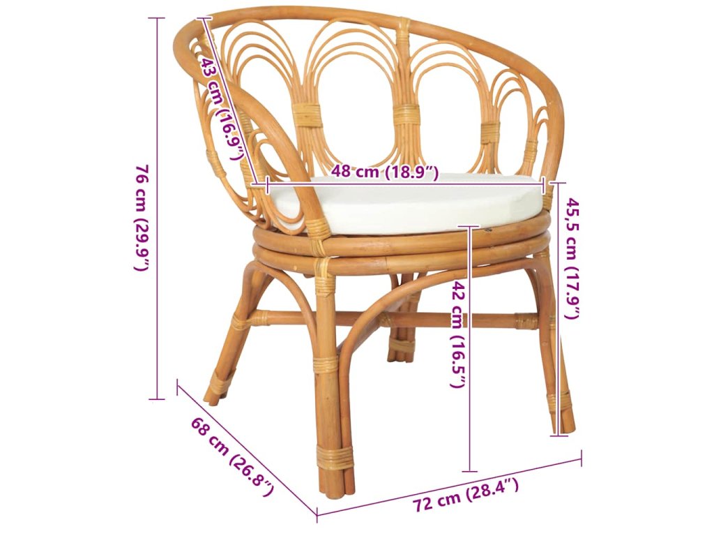Stolička je vyrobená z prírodného ratanu, vďaka čomu je odolná a ľahko sa čistí. Mäkký vankúš vám poskytne optimálne pohodlie po náročnom dni. Jedálenská stolička má zaoblené operadlo, ktoré ponúka vynikajúcu oporu pri sedení.