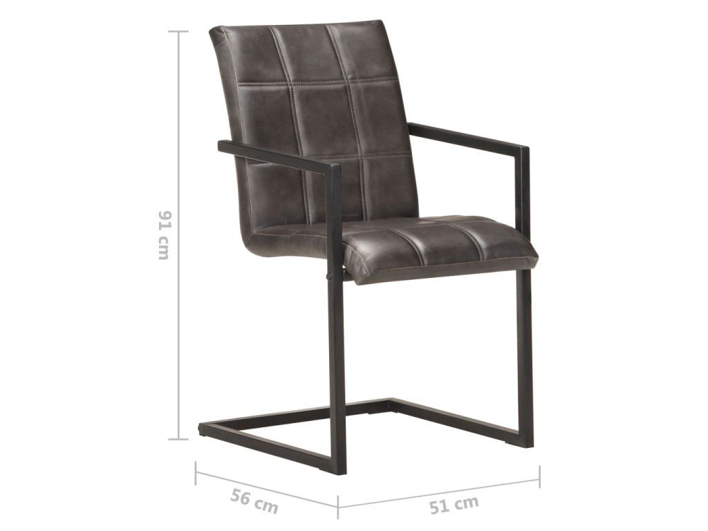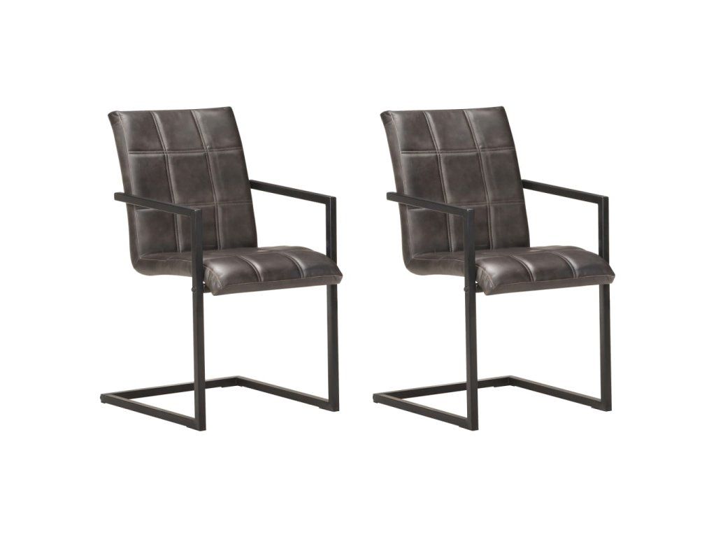 Multidom Jedálenské stoličky, perová kostra 2 ks, sivé, pravá koža