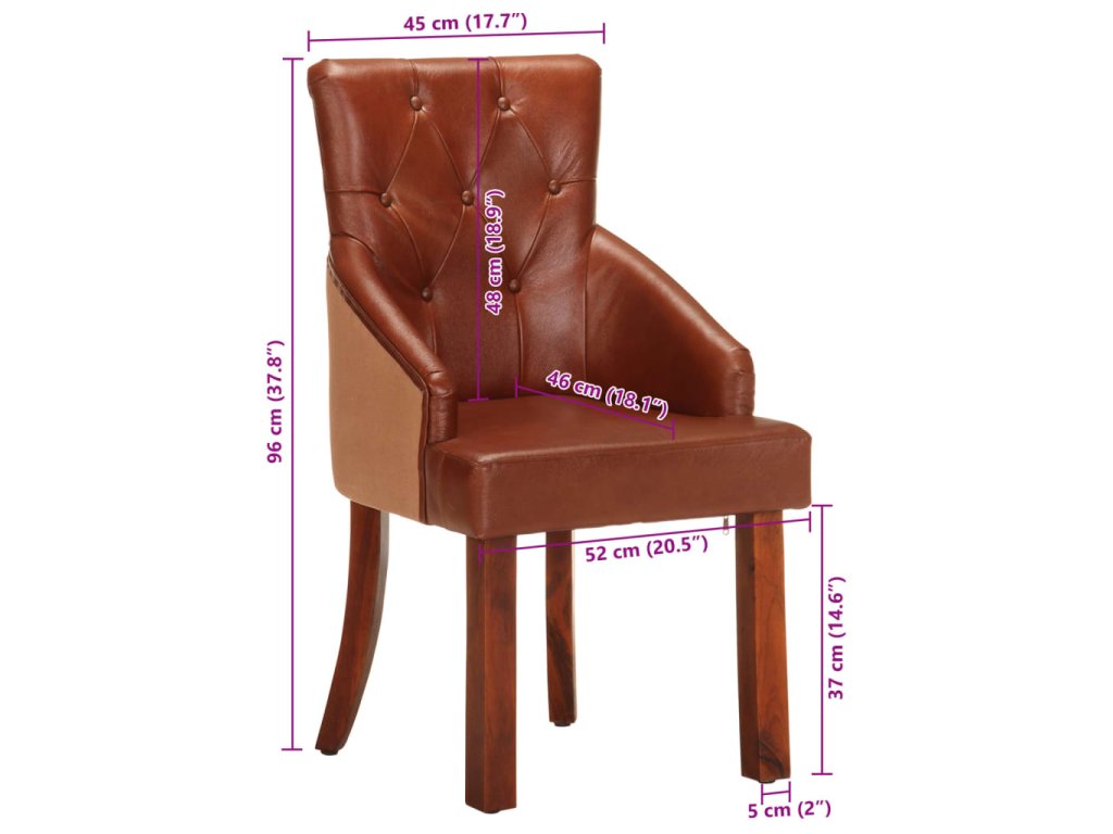 Multidom Jedálenské stoličky 2 ks, hnedé, pravá kozia koža