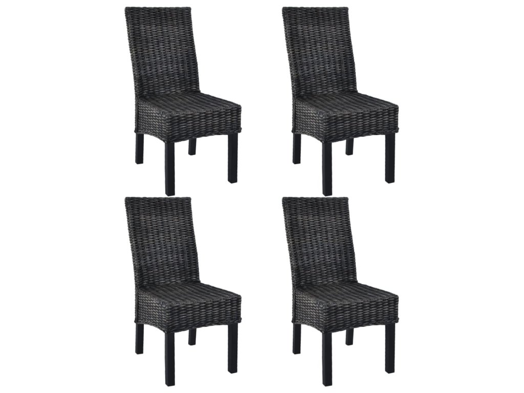 Multidom Jedálenské stoličky 4 ks, čierne, kubu ratan a mangové drevo